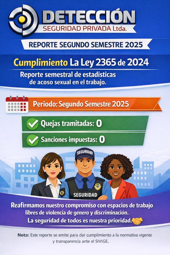 30 de diciembre de 2025Compromiso con espacios de trabajo seguros y libres de acosoEn Detección Seguridad Privada Ltda. reafirmamos nuestro compromiso con la […]